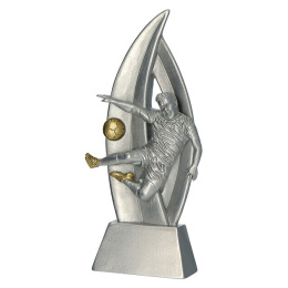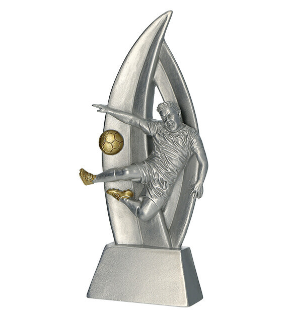 Tato elegantní trofej z odlévaného resinu (pryskyřice) ve stříbrno-zlatém provedení zachycuje brankáře v akci – ideální symbol sportovního nasazení a fair play.