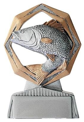 Stylové resinové ocenění s rybářským motivem, ideální pro rybářské závody, soutěže a slavnostní vyhlášení úlovků.