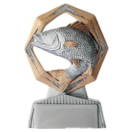 Tato elegantní trofej z odlévaného resinu (pryskyřice) ve stříbrno-zlatém provedení zobrazuje detailně zpracovanou rybu – symbol trpělivosti, zručnosti a rybářské vášně.