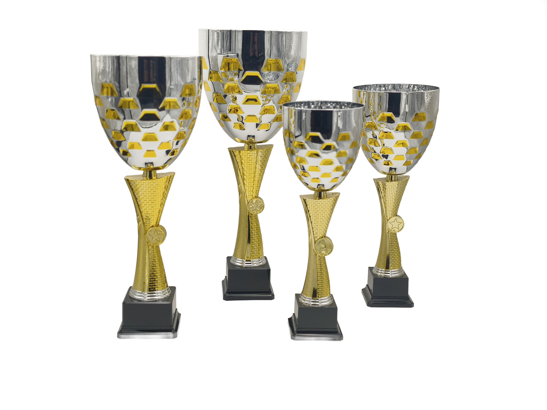 Tip pro organizátory: Pro řadu Goldstar doporučujeme na tmavý podstavec zvolit kovové štítky v barvě daného poháru (zlatý ke zlatému atd.). Na těchto pohárech vypadá fantasticky, pokud je gravírování doplněno logem turnaje uprostřed, což podtrhne symetrii a velkolepost celého ocenění.