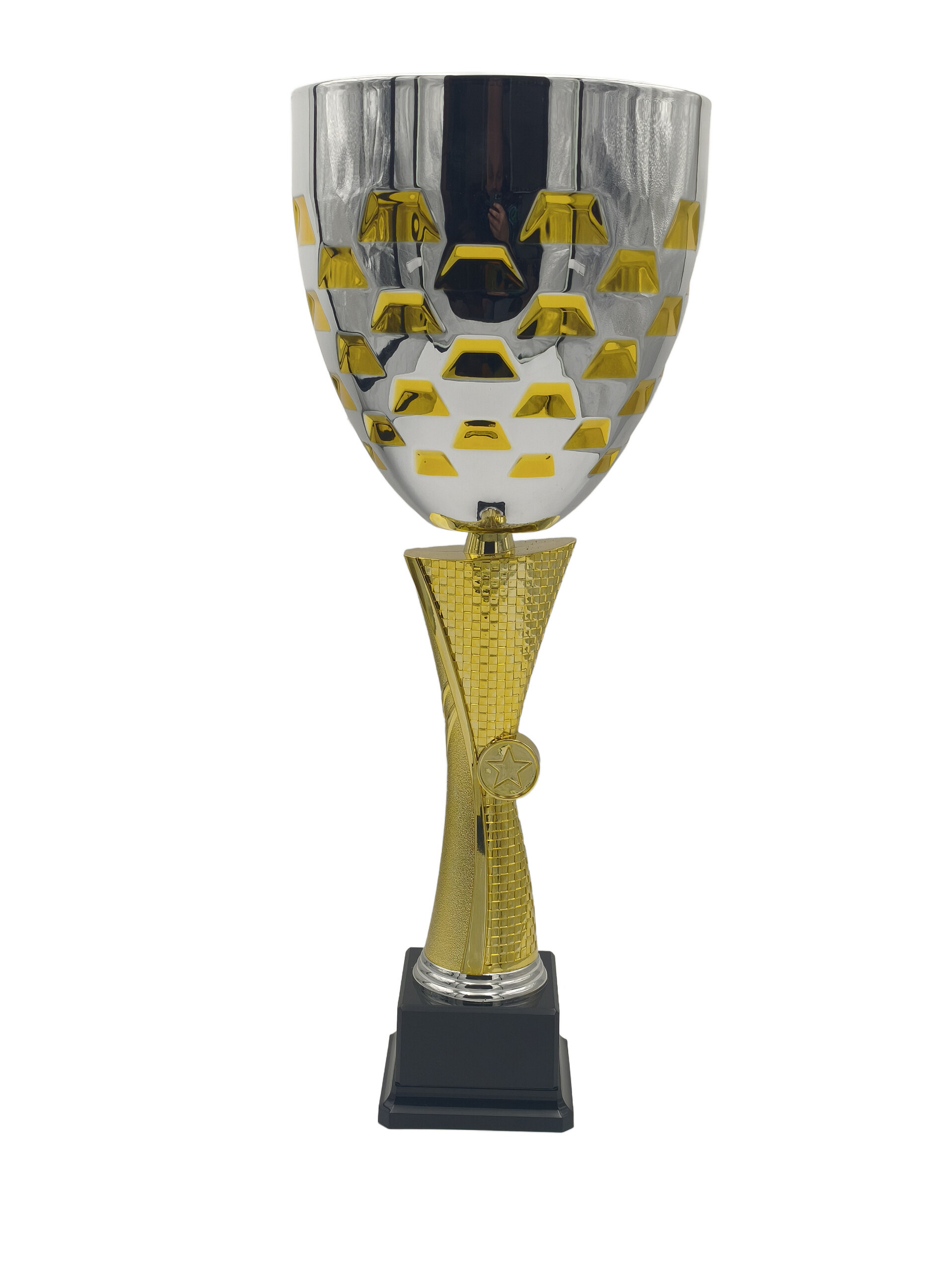 Pohár řady Goldstar je ztělesněním prestiže a tradice. Je to trofej, která na první pohled evokuje největší sportovní úspěchy historie. Dominantou je široký, otevřený kalich s výraznými, vysoko posazenými uchy, která poháru dodávají královský vzhled. Tento model je navržen pro ty nejdůležitější okamžiky, kdy je třeba ocenit výjimečný výkon trofejí, která svou aurou ovládne celou místnost.